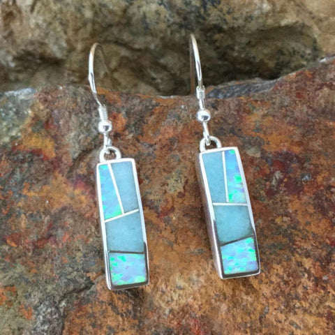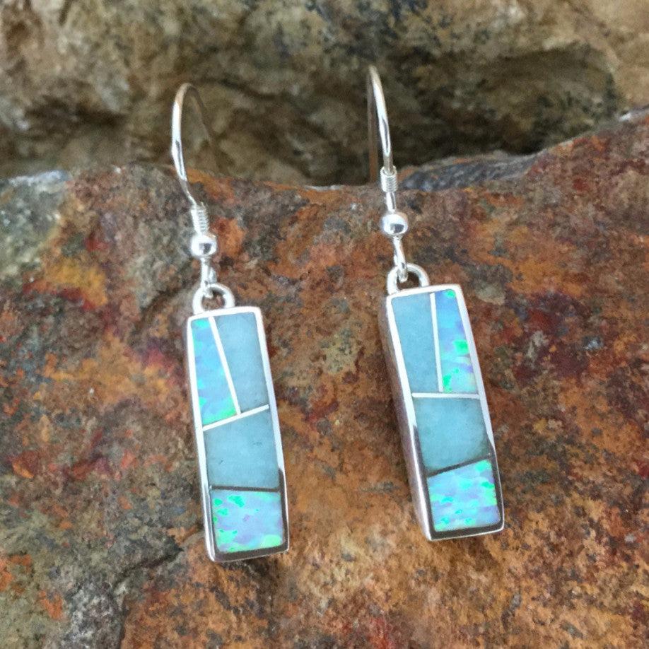 These gorgeous Sterling Silver Earrings, as part of the Amazing Light Collection, features Amazonite and Lab Opal.