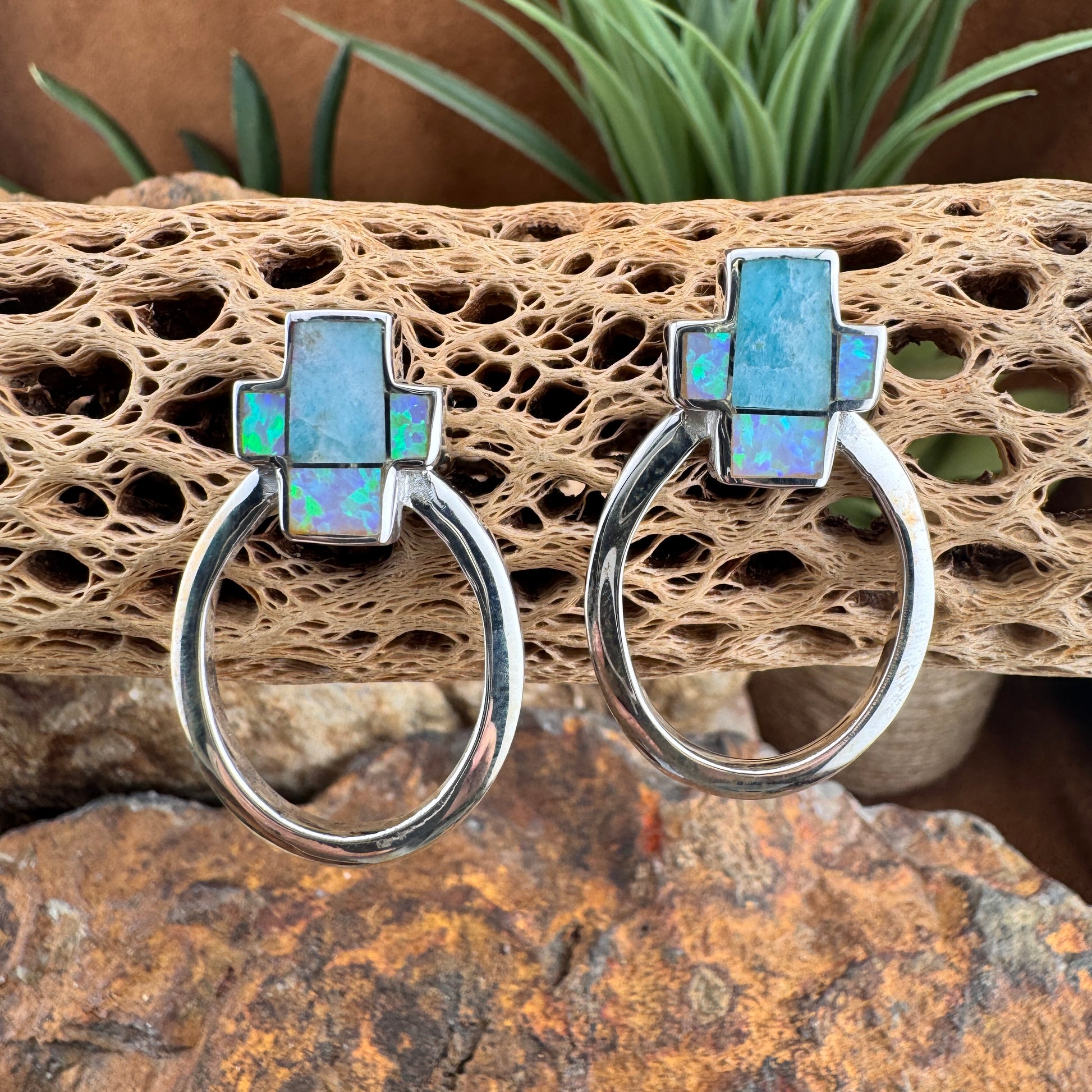 David Rosales Amazing Light Inlaid Sterling Silver Earrings