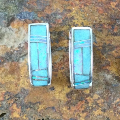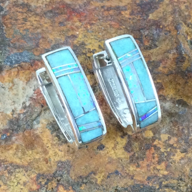 David Rosales Amazing Light Inlaid Sterling Silver Earrings Huggie