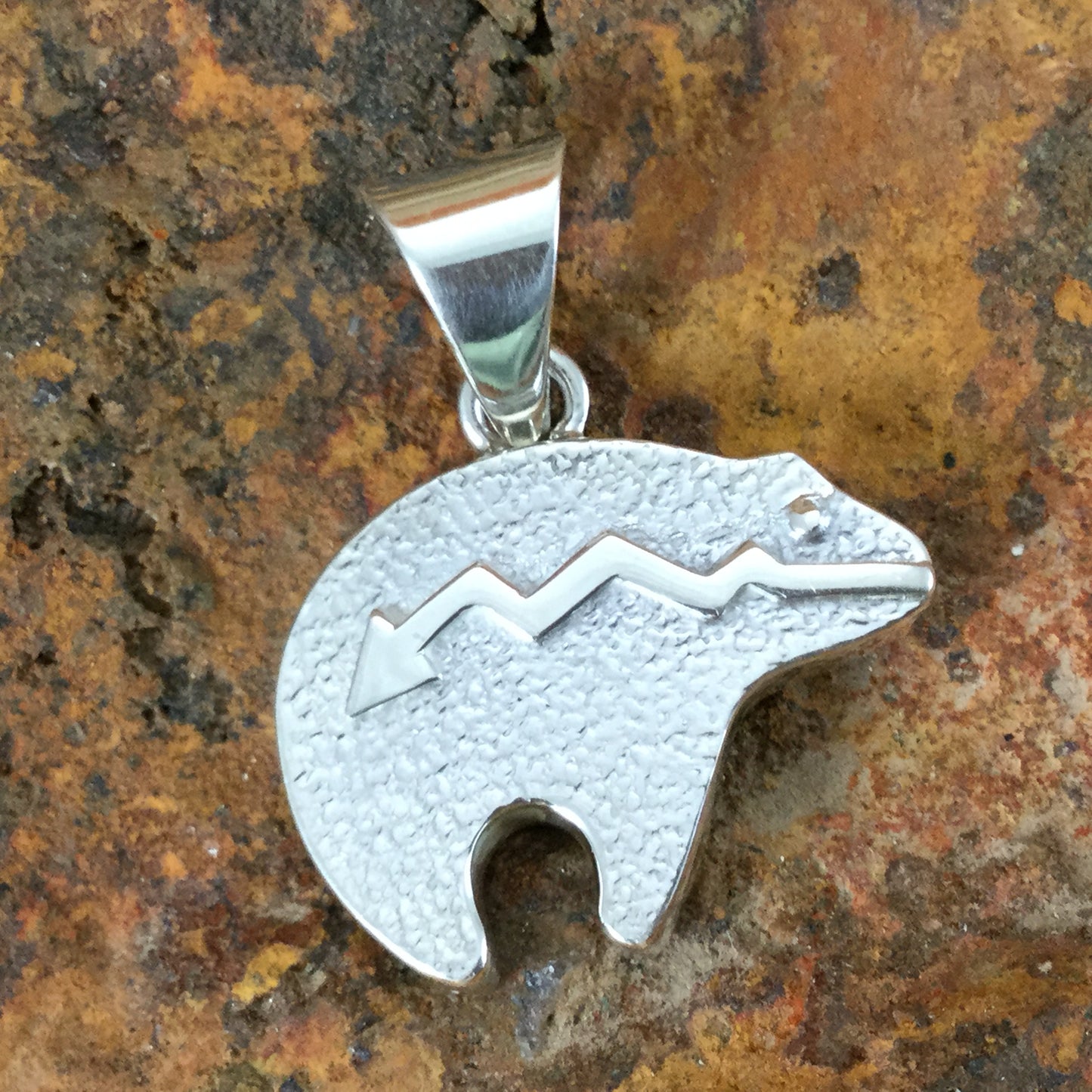 David Rosales Amazing Light Inlaid Sterling Silver Pendant Bear