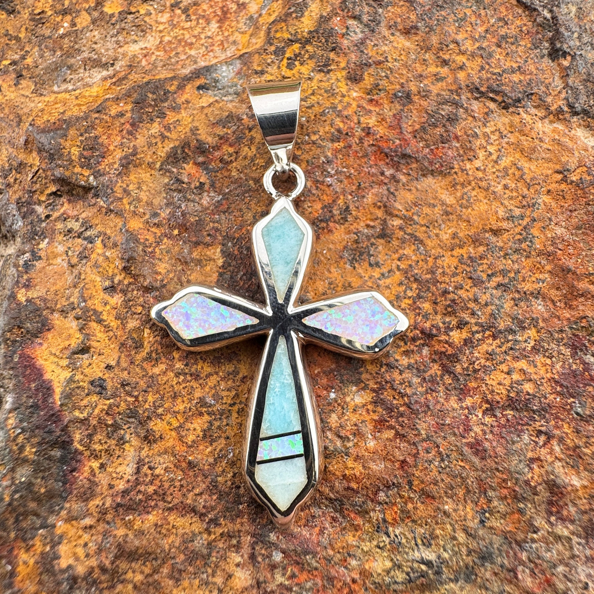 David Rosales Amazing Light Inlaid Sterling Silver Pendant Cross