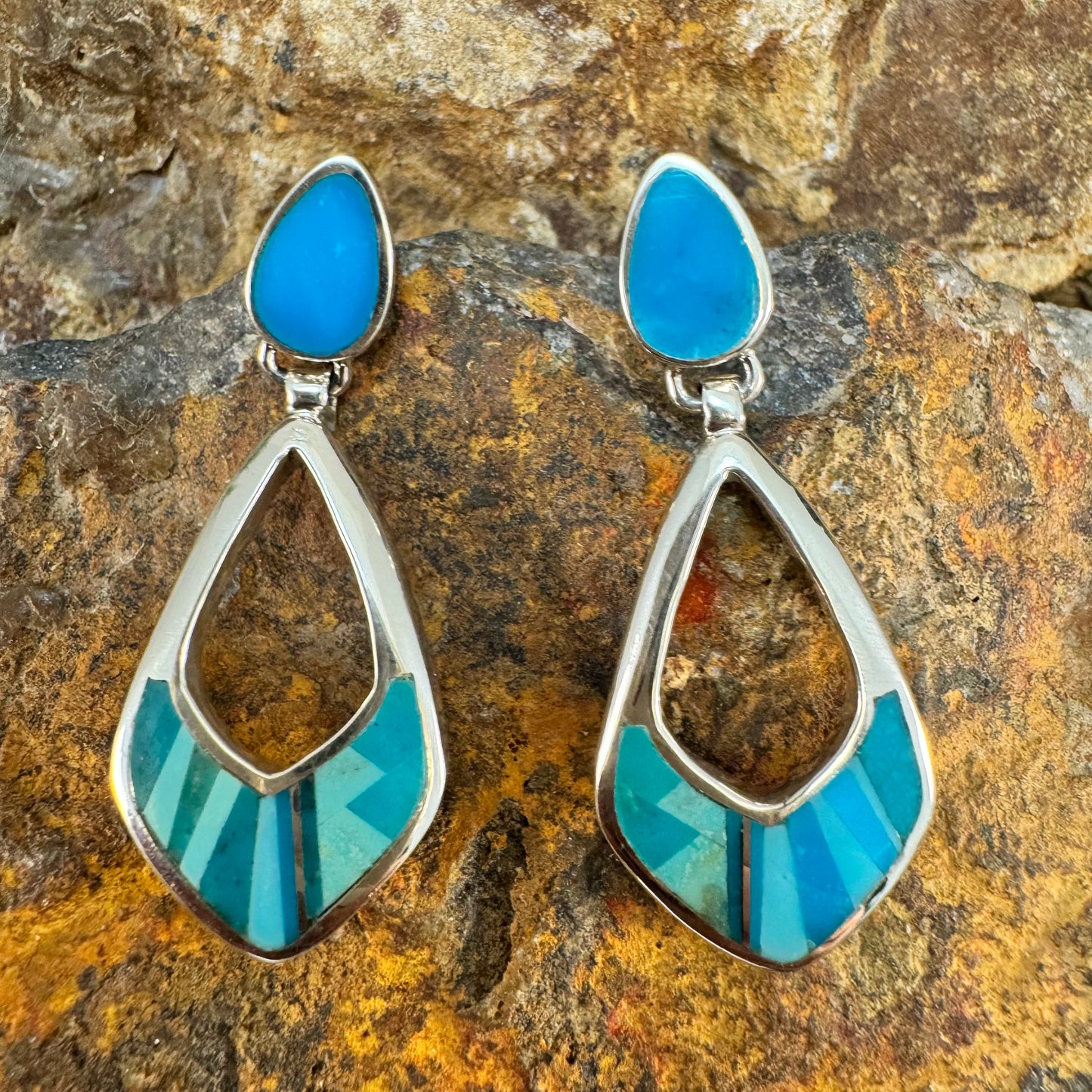 David Rosales Arizona Blue Two Tone Inlaid Sterling Silver Earrings