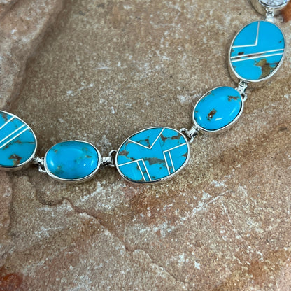 David Rosales Arizona Blue Fancy Inlaid Sterling Silver Necklace w/ Cubic Zirconia