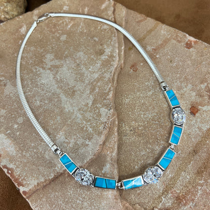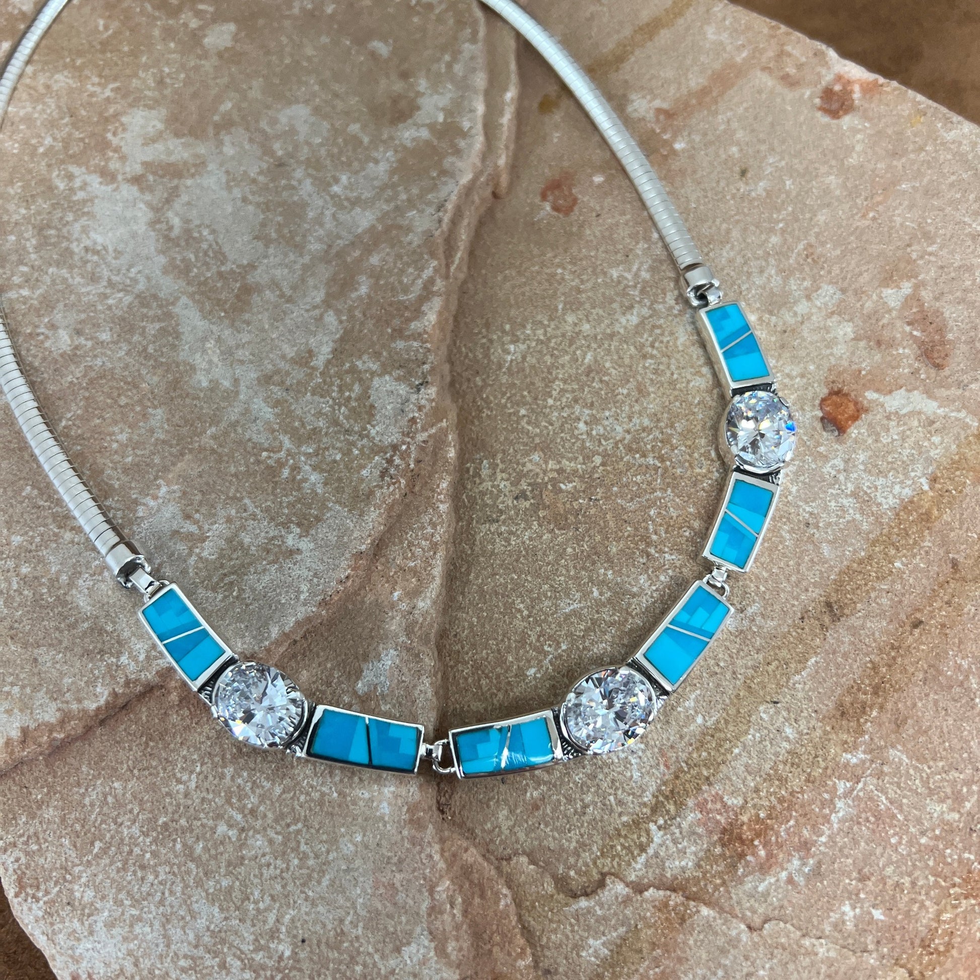 David Rosales Arizona Blue Fancy Inlaid Sterling Silver Necklace w/ Cubic Zirconia