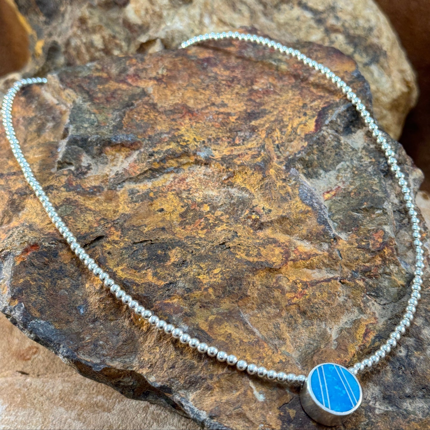 David Rosales Arizona Blue Inlaid Beaded Necklace - 3mm