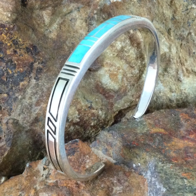 David Rosales Arizona Blue Inlaid Sterling Silver Bracelet
