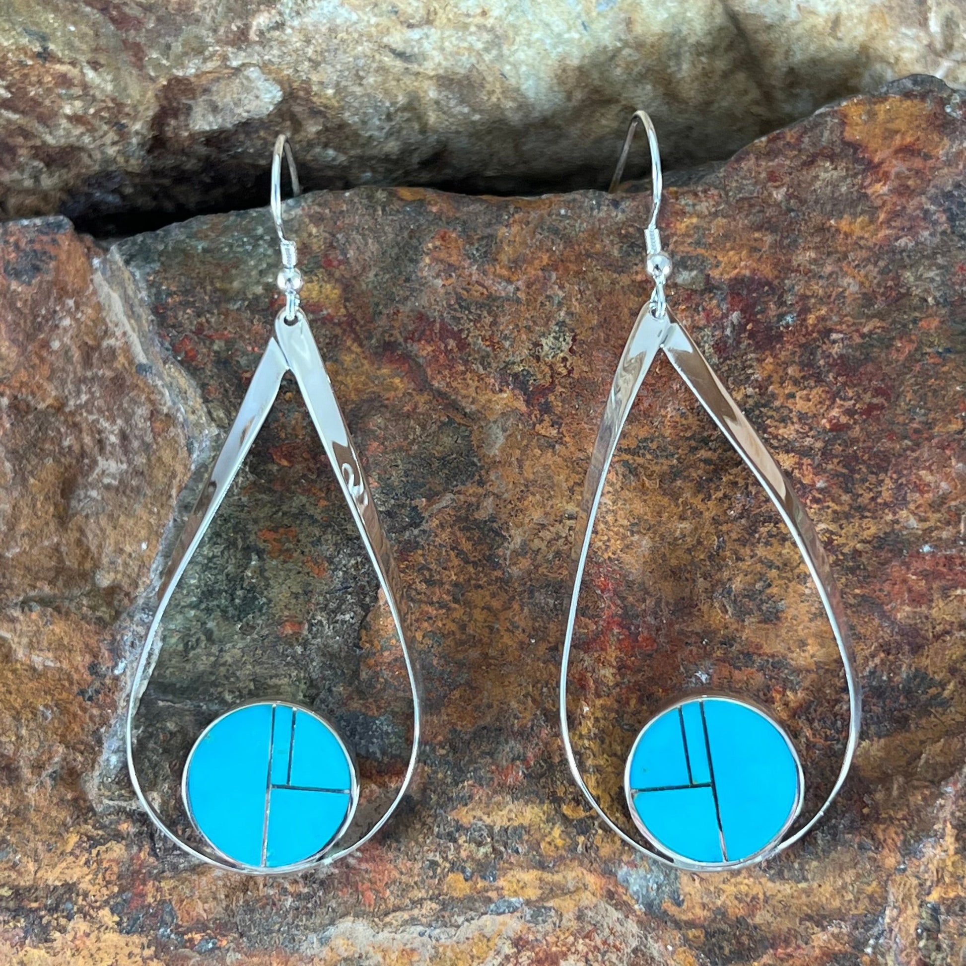 David Rosales Arizona Blue Inlaid Sterling Silver Earrings
