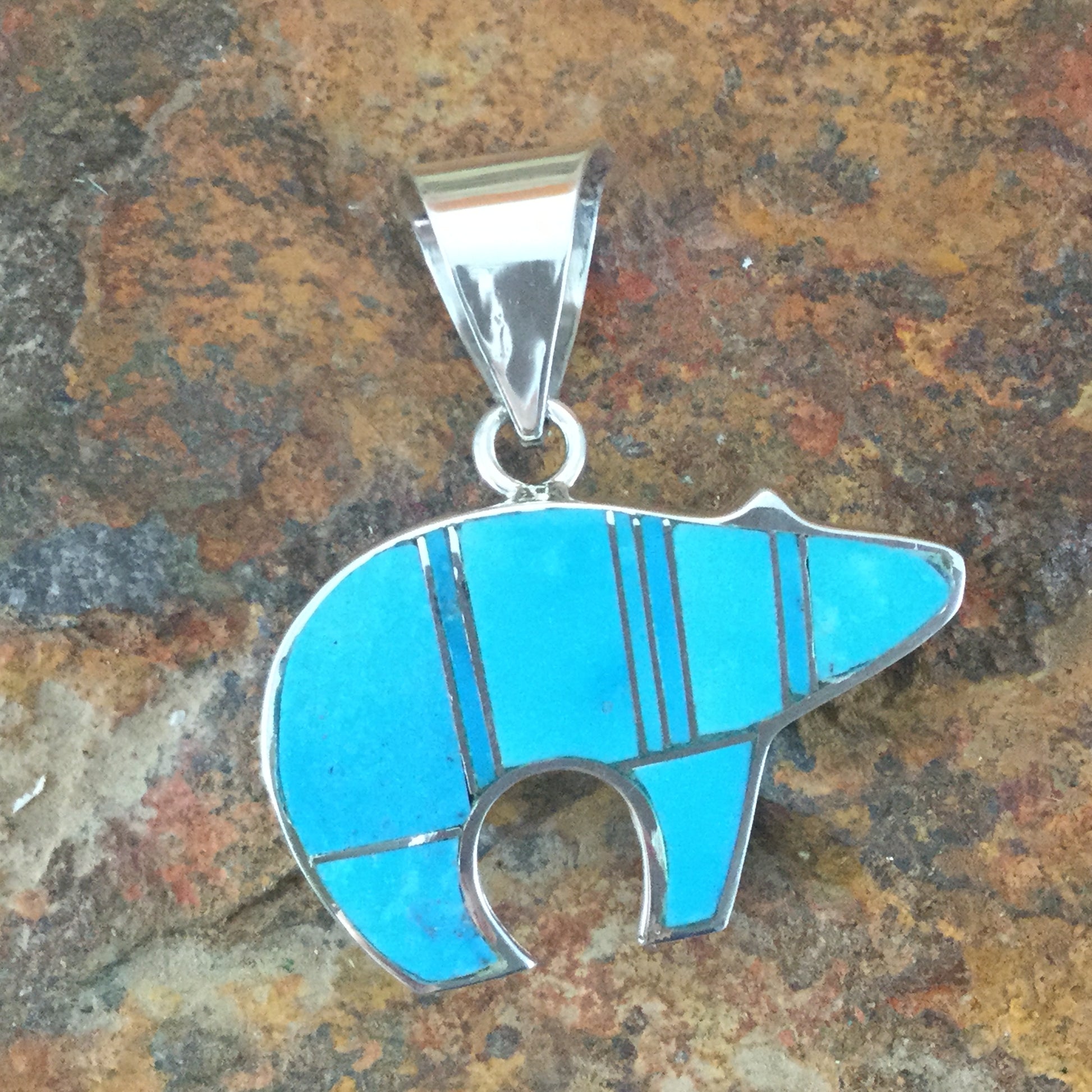Ask a question about David Rosales Arizona Blue Inlaid Sterling Silver Pendant Bear