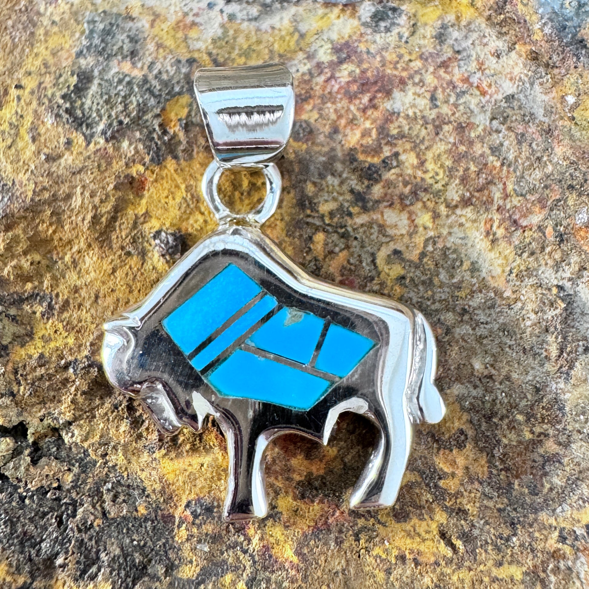 David Rosales Arizona Blue Inlaid Sterling Silver Pendant Buffalo