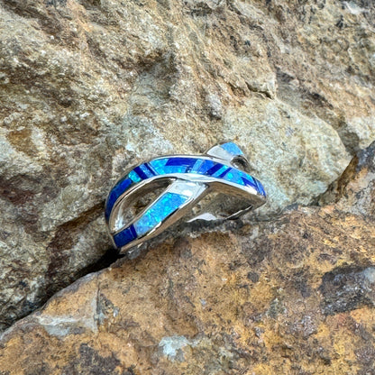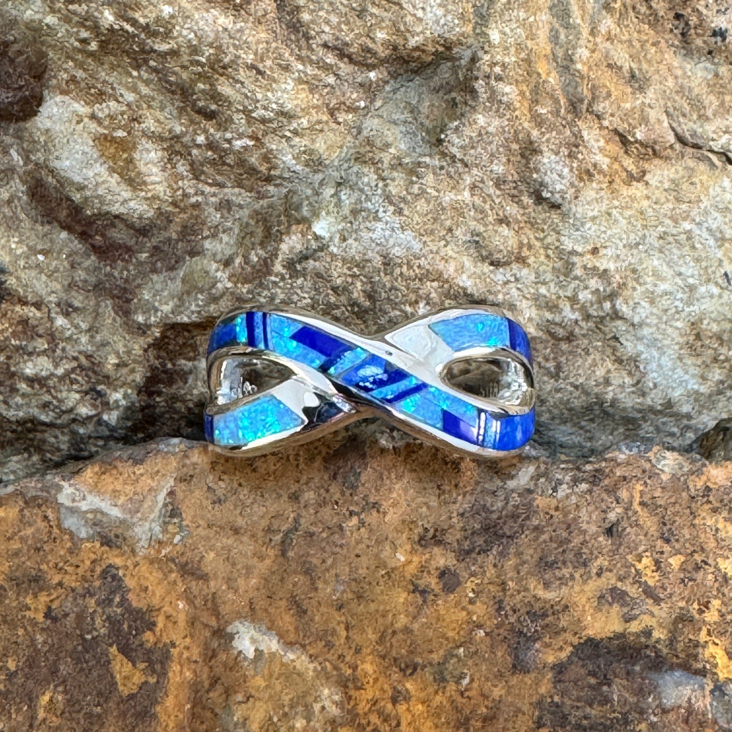 This beautiful Sterling Silver Ring, as part of the Blue Sky Collection, features Royal Lapis, Denim Lapis and Cultured Opal Inlaid Pattern.
