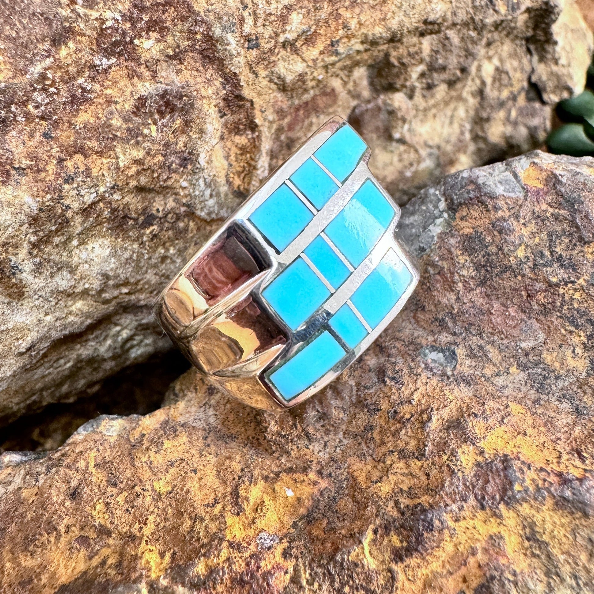 The ring is designed by David Rosales, one of the finest contemporary Southwest Artists in the world. He is the founder and co-owner of Supersmiths, Inc. of Gallup, NM.