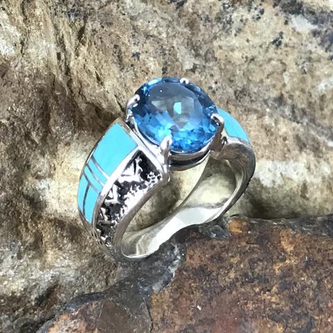 Ask a question about David Rosales Arizona Blue Inlaid Sterling Silver Ring w/ Blue Topaz