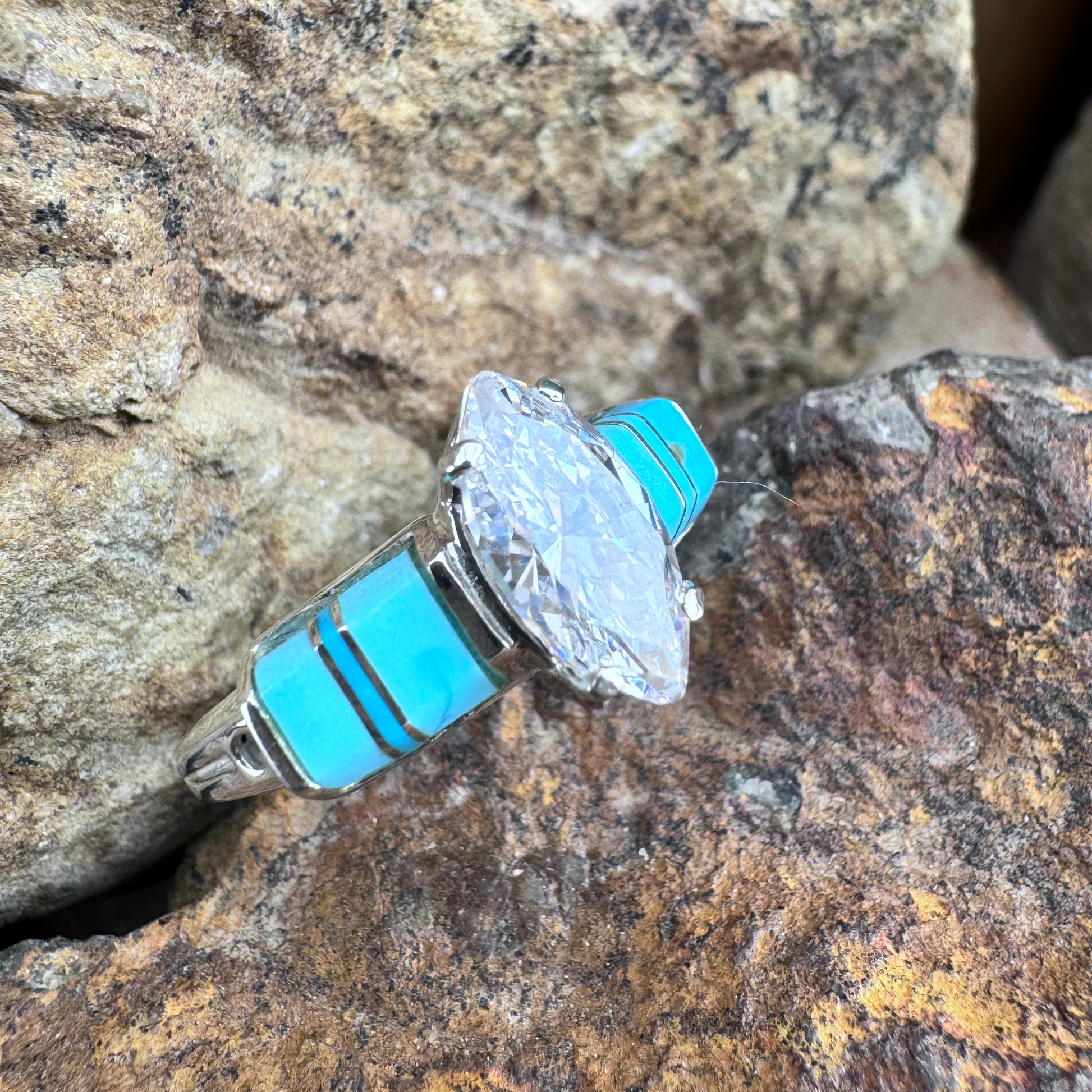 David Rosales Arizona Blue Inlaid Sterling Silver Ring with Cubic Zirconia