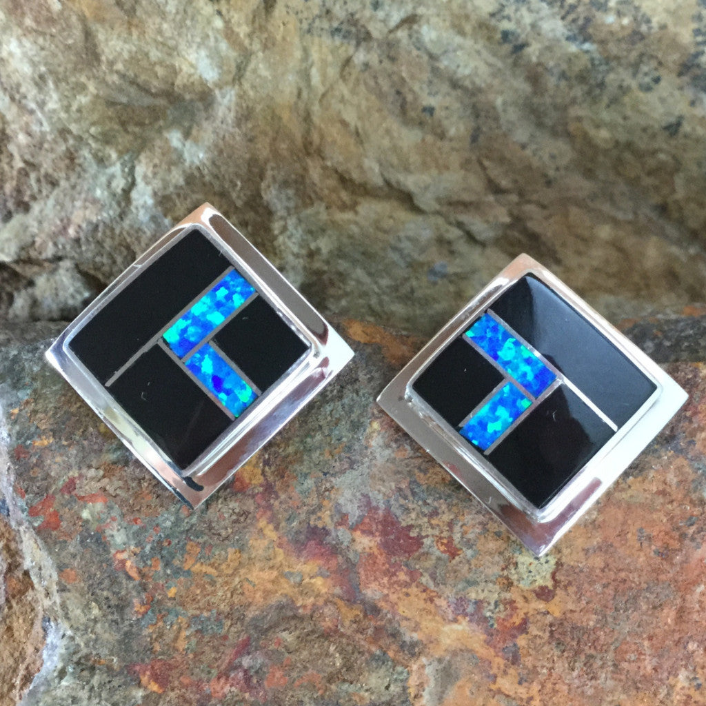 David Rosales Black Beauty Inlaid Sterling Silver Earrings