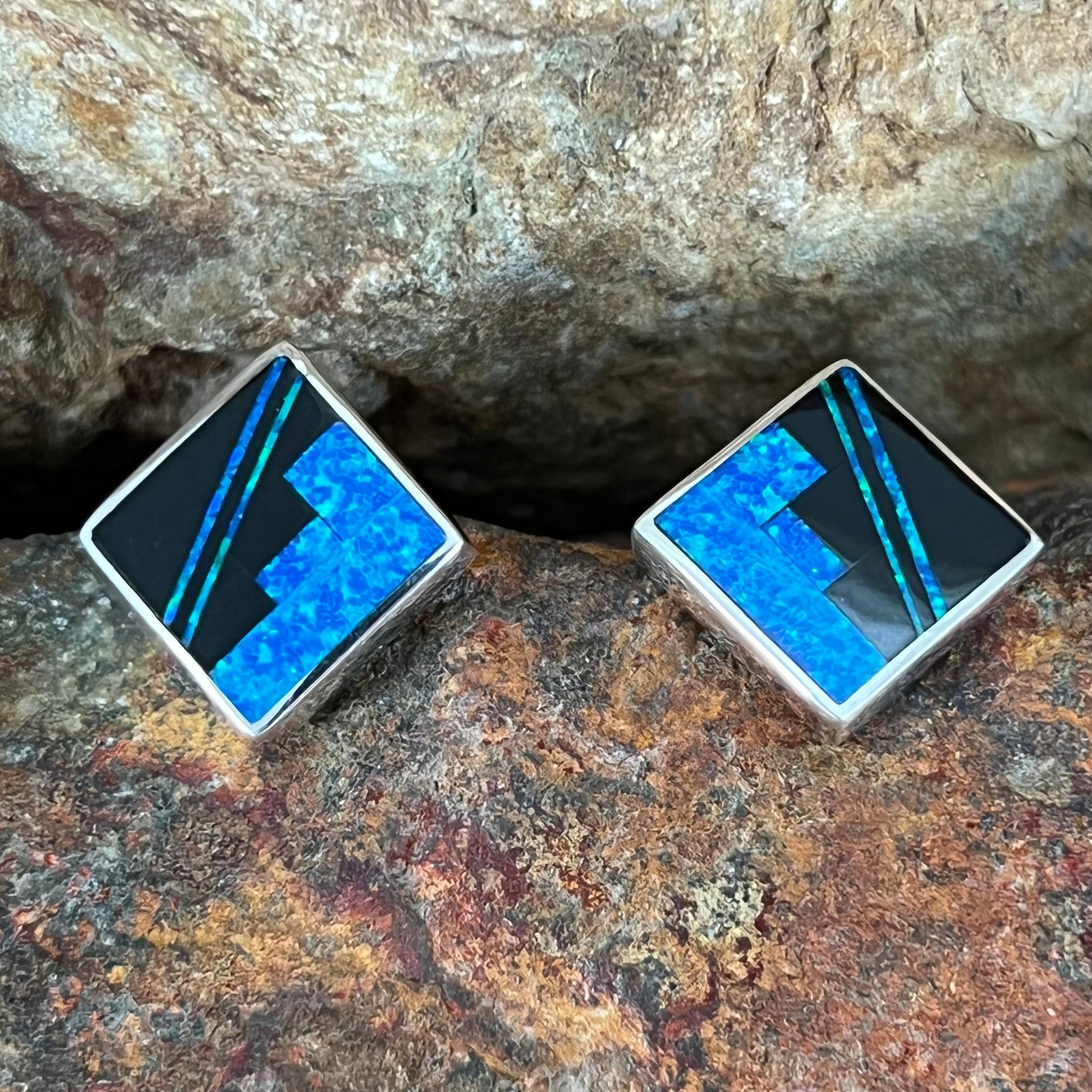 David Rosales Black Beauty Inlaid Sterling Silver Earrings