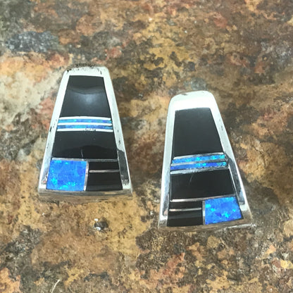 David Rosales Black Beauty Inlaid Sterling Silver Earrings Huggie