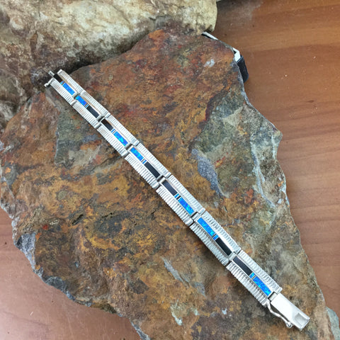 David Rosales Black Beauty Inlaid Sterling Silver Link Bracelet
