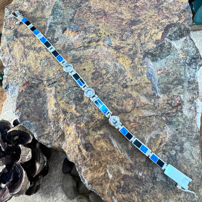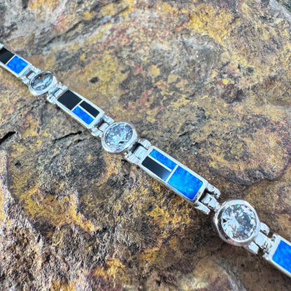 David Rosales Black Beauty Inlaid Sterling Silver Link Bracelet w/ Cubic Zirconia