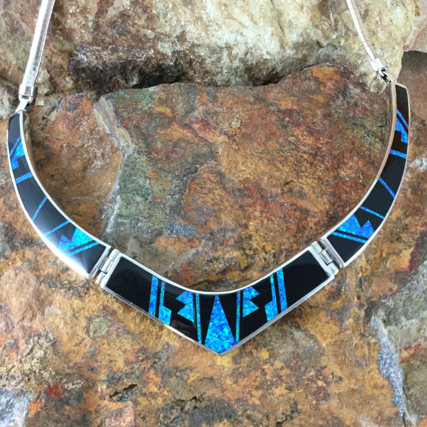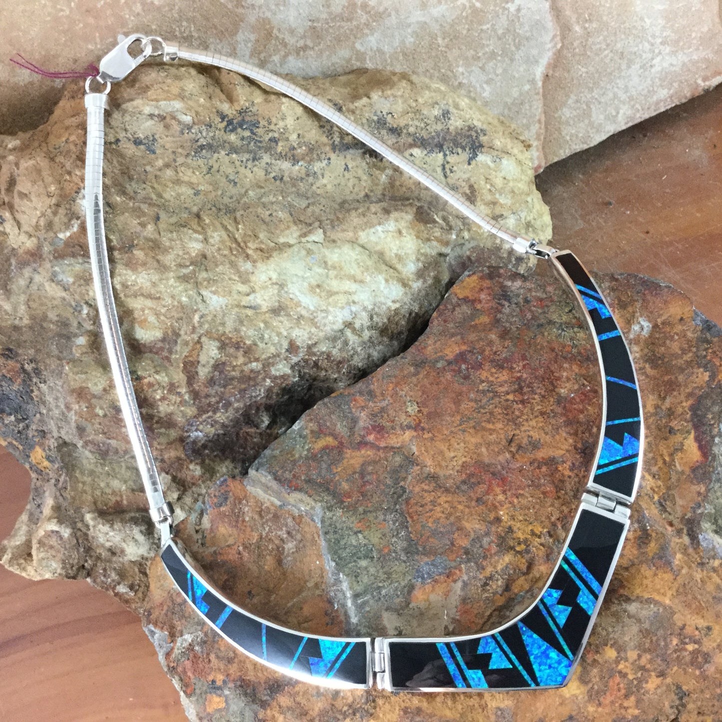 David Rosales Black Beauty Fancy Inlaid Sterling Silver Necklace