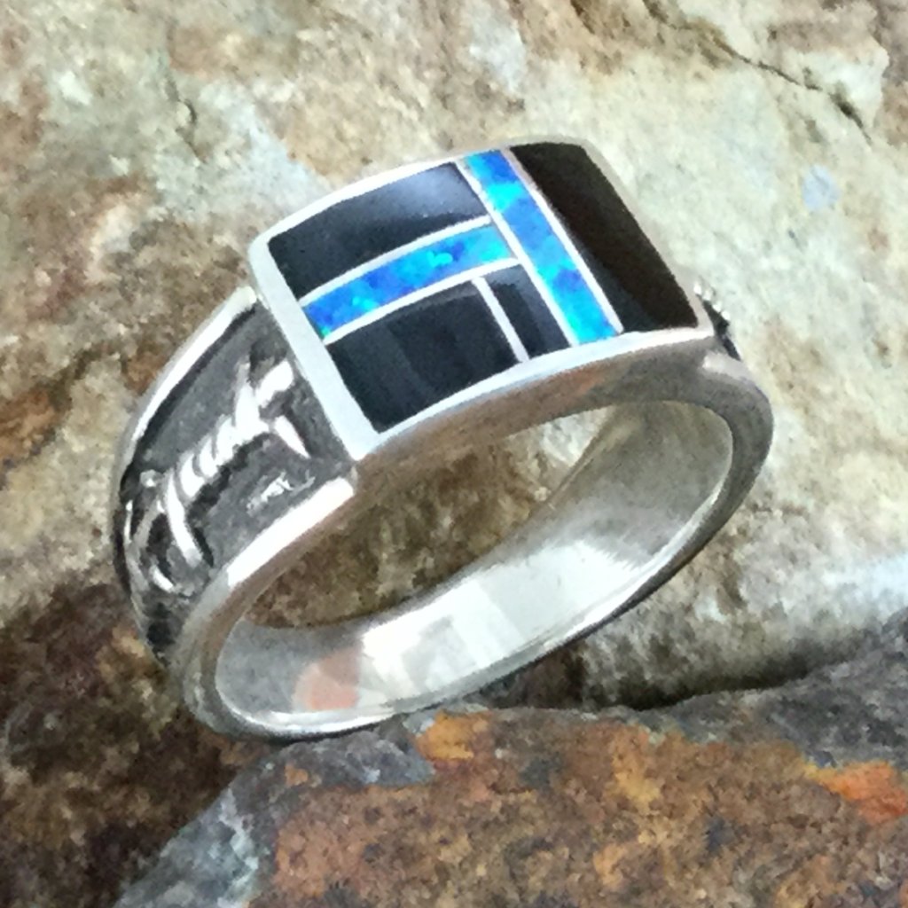 The ring is designed by David Rosales, one of the finest contemporary Southwest Artists in the world. He is the founder and co-owner of Supersmiths, Inc. of Gallup, NM.