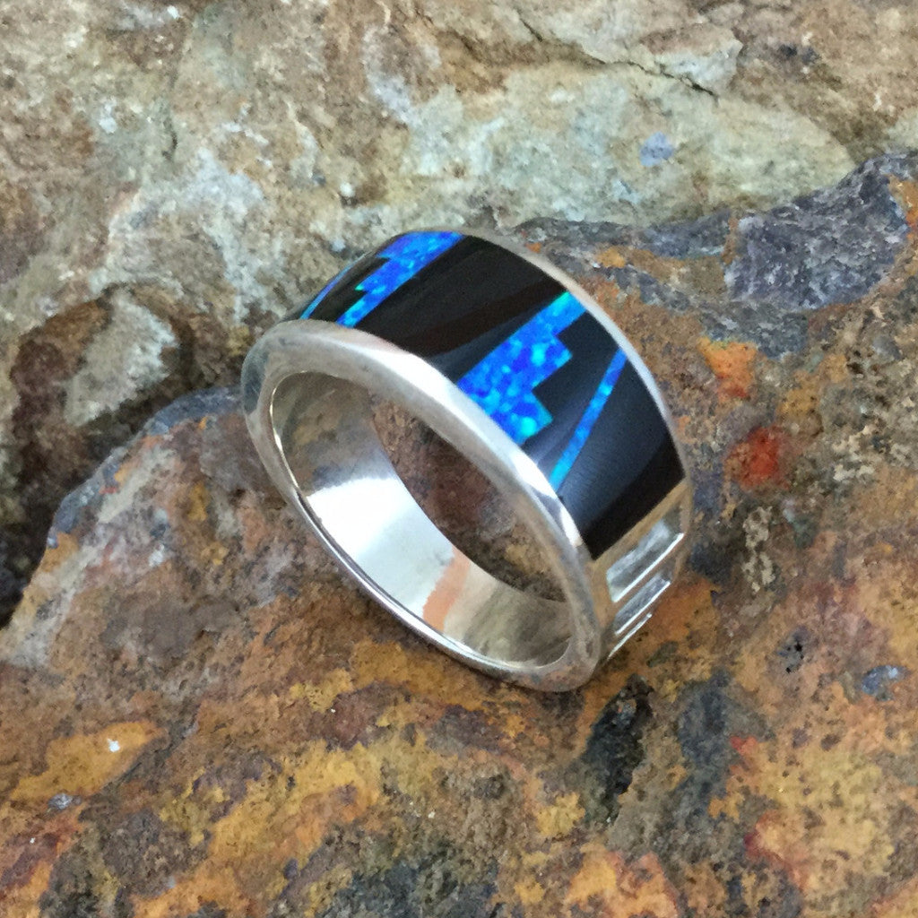 David Rosales Black Beauty Fancy Inlaid Sterling Silver Ring