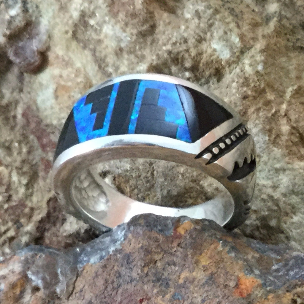 The ring is designed by David Rosales, one of the finest contemporary Southwest Artists in the world. He is the founder and co-owner of Supersmiths, Inc. of Gallup, NM.