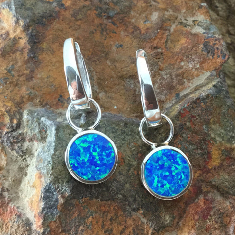 These gorgeous Sterling Silver Earrings, shown from the Blue Water Collection which features Royal & Denim Lapis. The dangle can be reversed to a show a Blue Cultured Opal