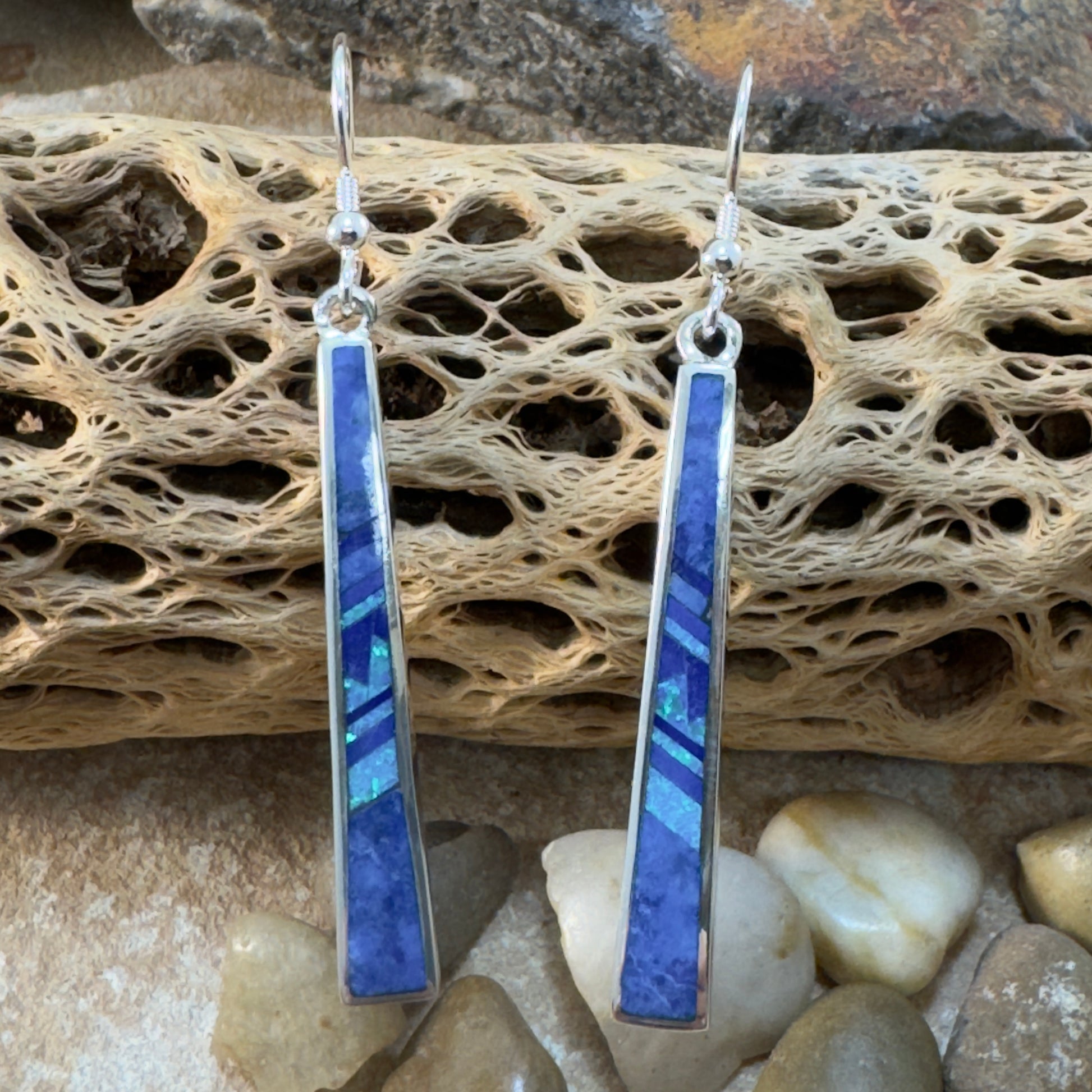These gorgeous Sterling Silver Earrings, as part of the Blue Sky Collection, feature Royal Lapis, Denim Lapis and Cultured Opal.