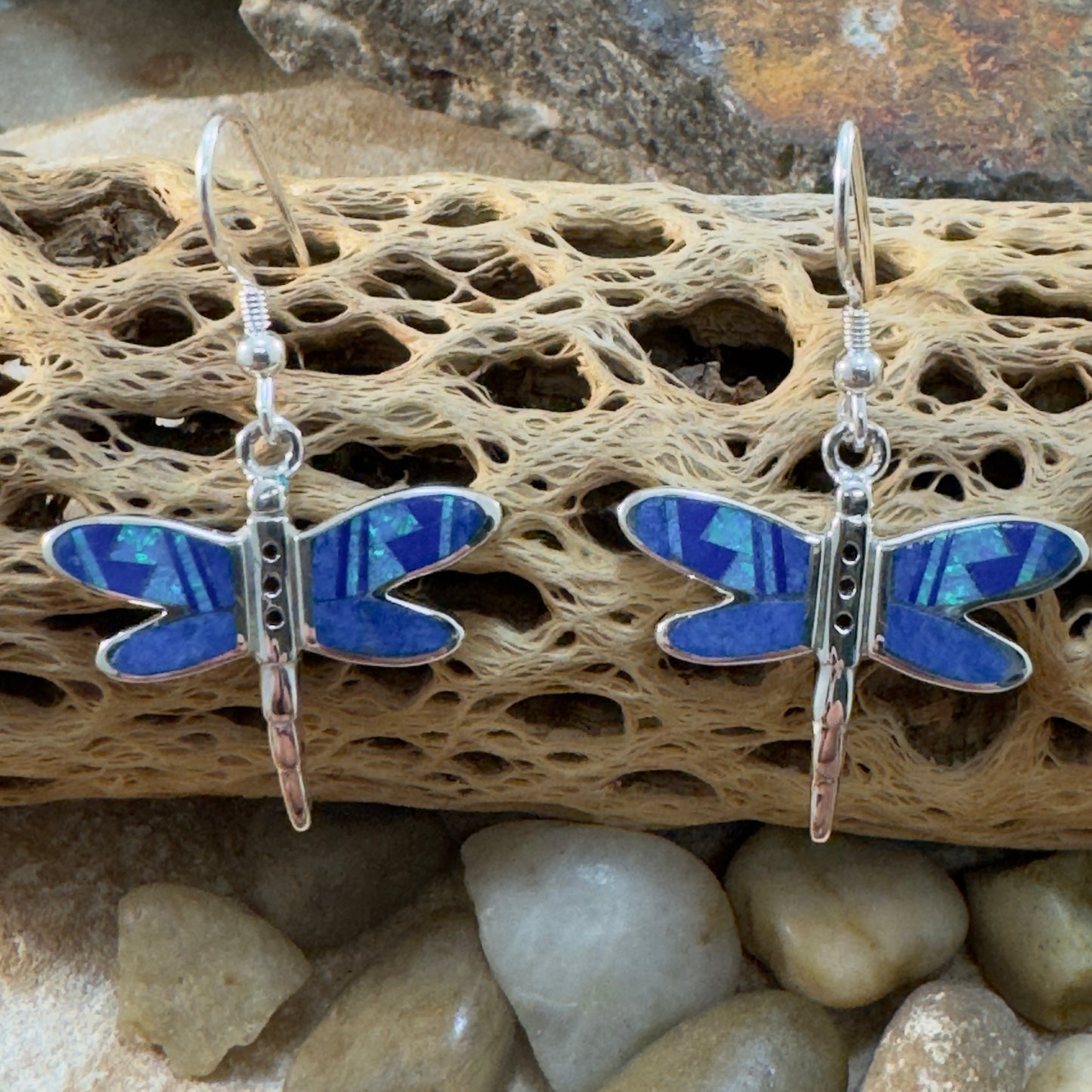 These gorgeous Sterling Silver Dragonfly Earrings, as part of the Blue Sky Collection featuring Denim Lapis, Royal Lapis and Cultured Opal.