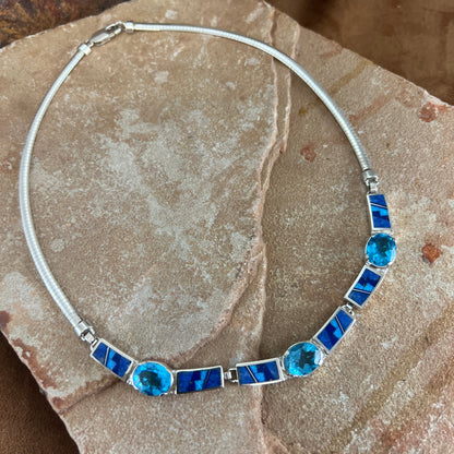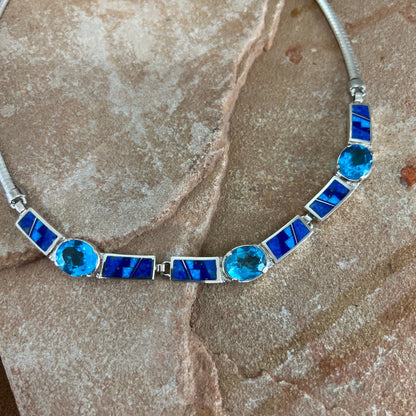 David Rosales Blue Sky Inlaid Sterling Silver Necklace w/ Blue Topaz