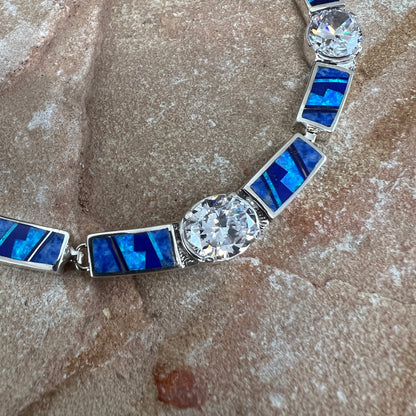 David Rosales Blue Sky Inlaid Sterling Silver Necklace w/ Cubic Zirconia
