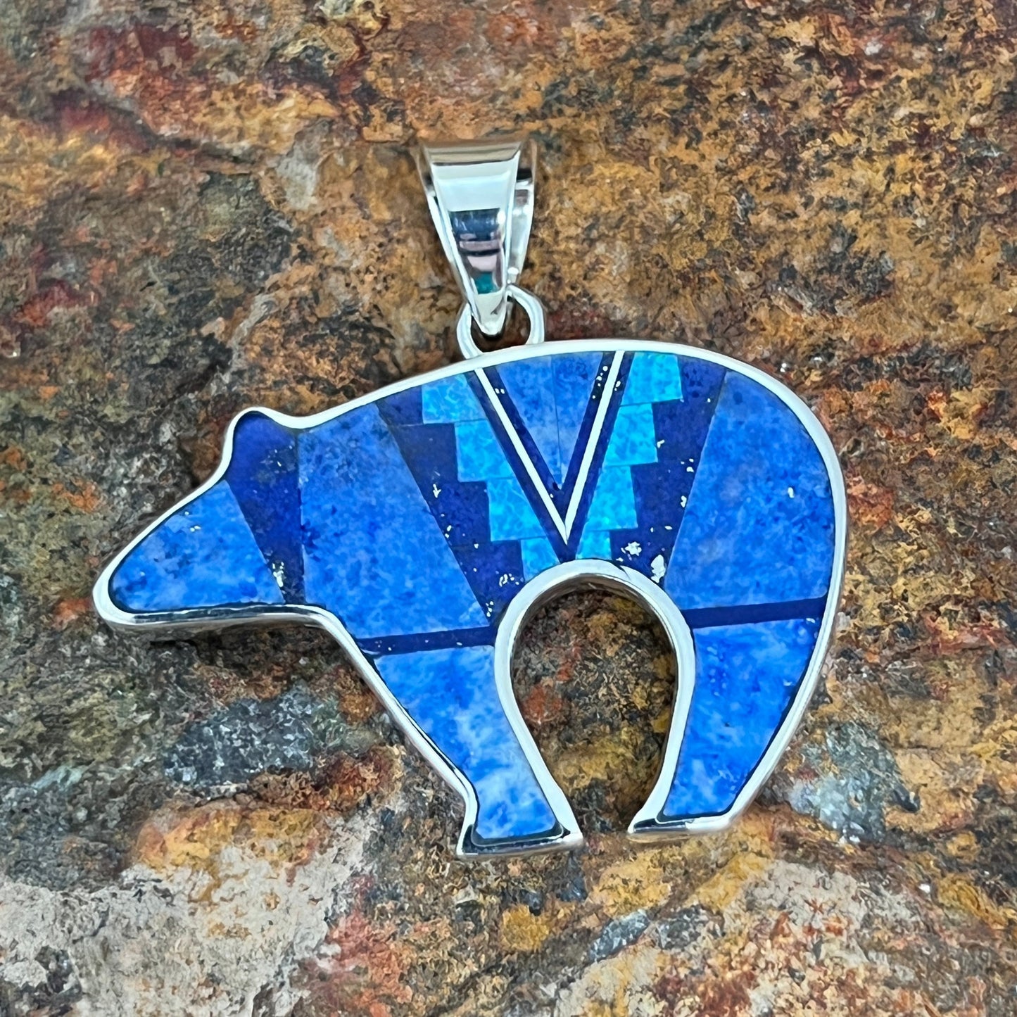 David Rosales Blue Sky Inlaid Sterling Silver Pendant Bear