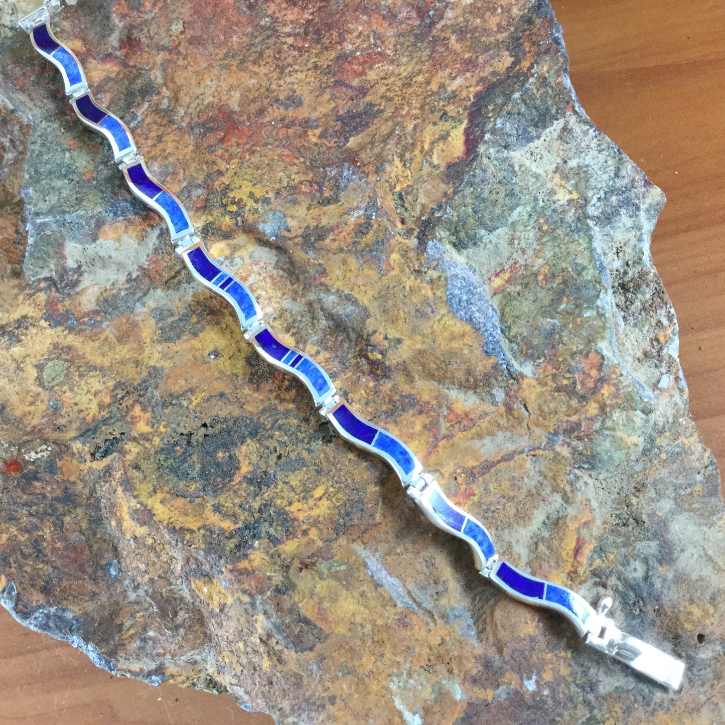 Ask a question about David Rosales Blue Water Inlaid Sterling Silver Wavy Link Bracelet