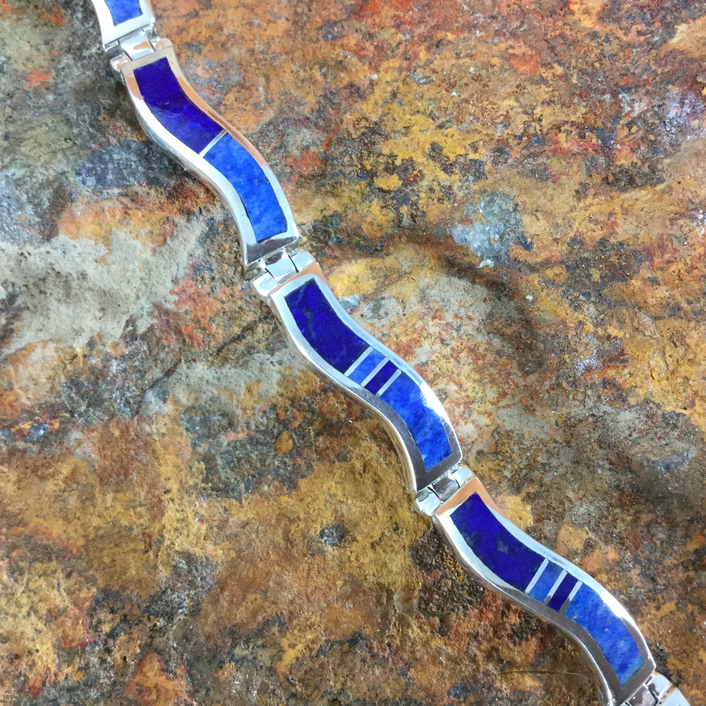 This Beautiful Sterling Silver Bracelet is shown in the Blue Water Collection which features Royal & Denim Lapis.
