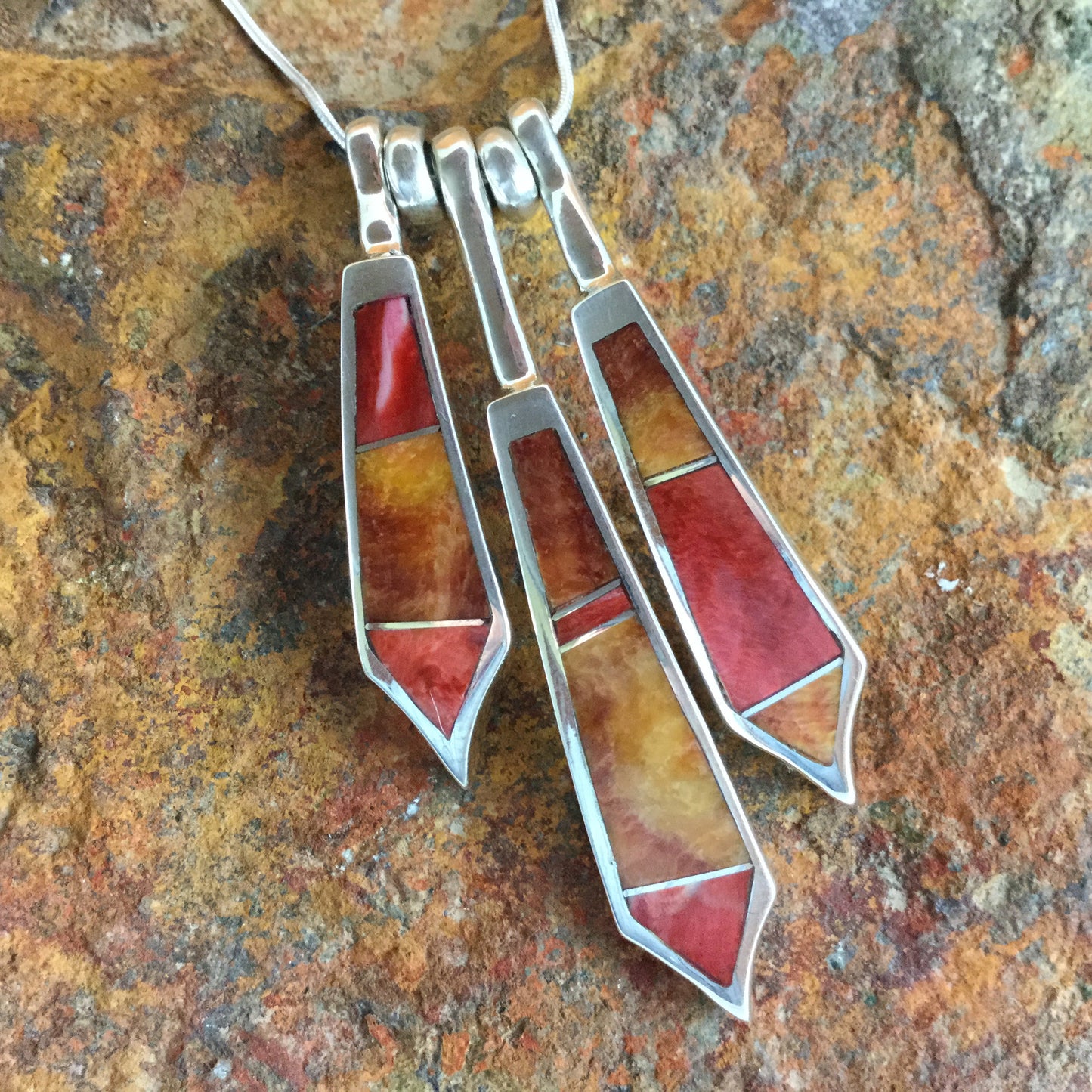 This gorgeous Sterling Silver Necklace with 3 Pendants, as part of the Desert Fire Collection, features Orange & Red Spiny Oyster. Includes Sterling Silver Chain.