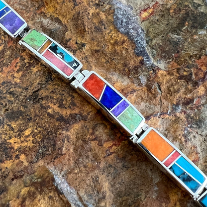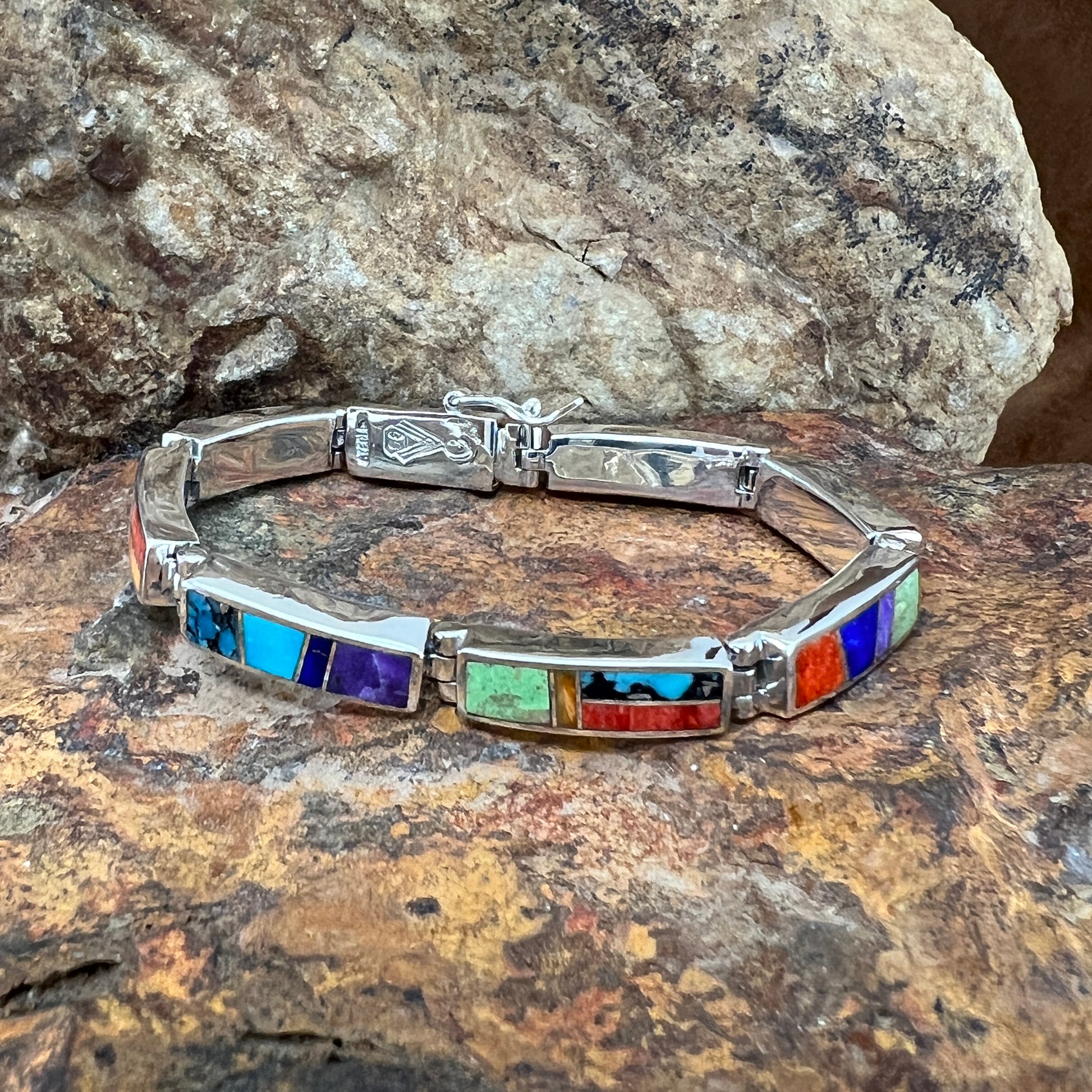 David Rosales Indian Summer Inlaid Sterling Silver Big Link Bracelet