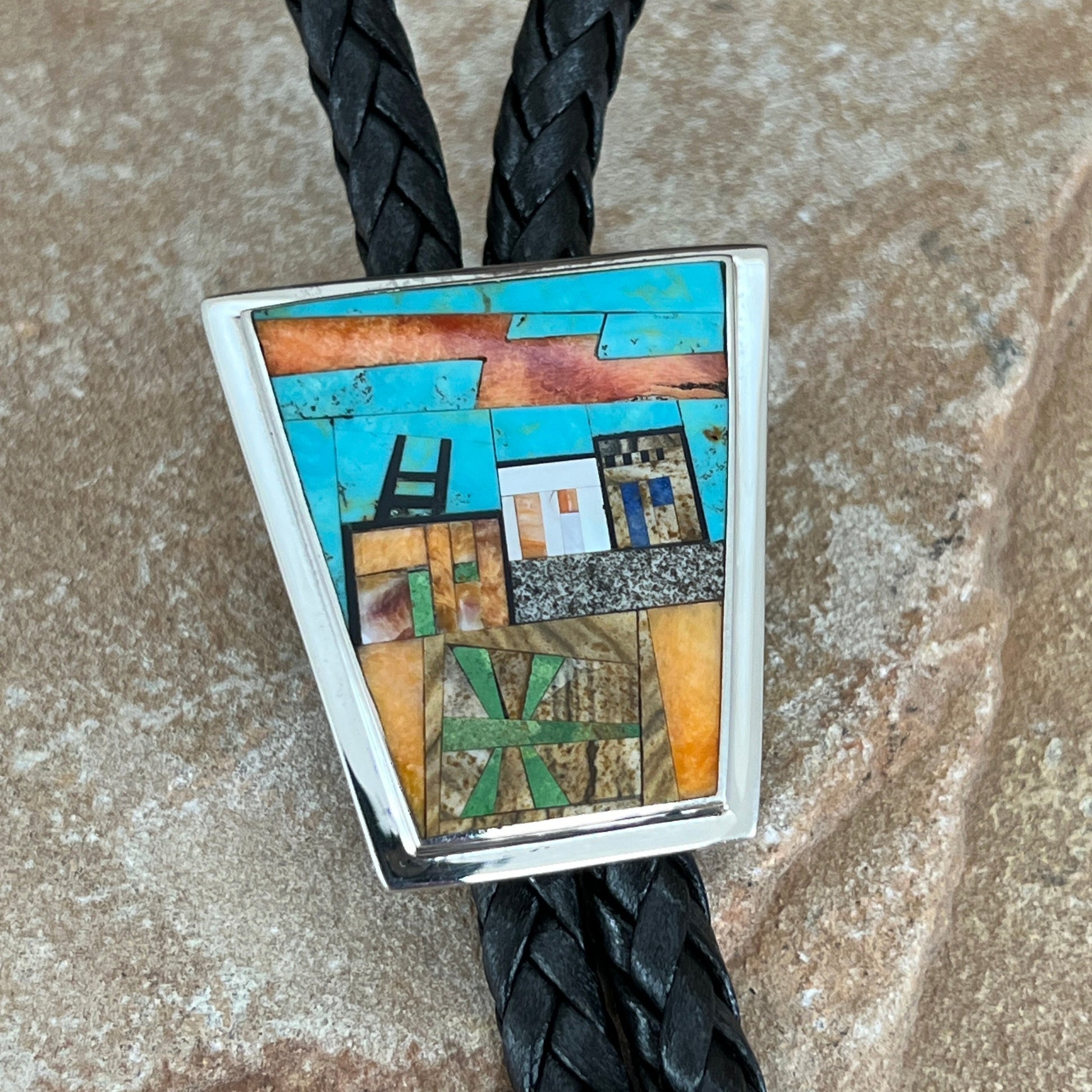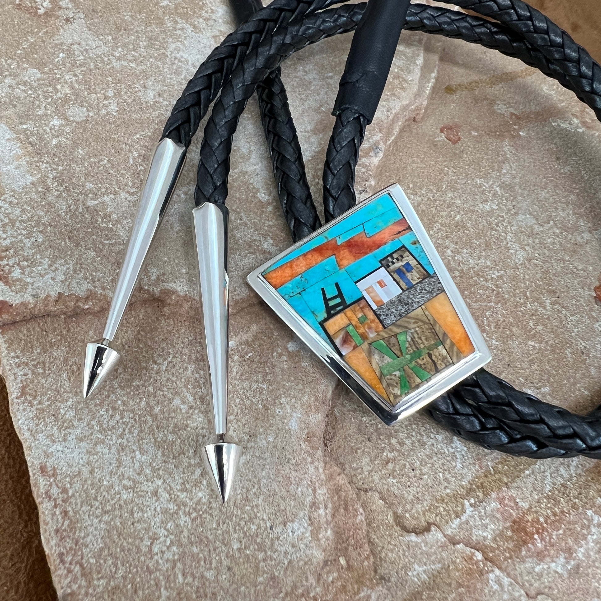 David Rosales Fancy Inlaid Sterling Silver Bolo Tie Pueblo