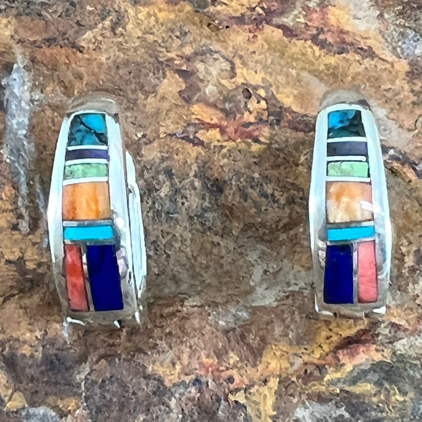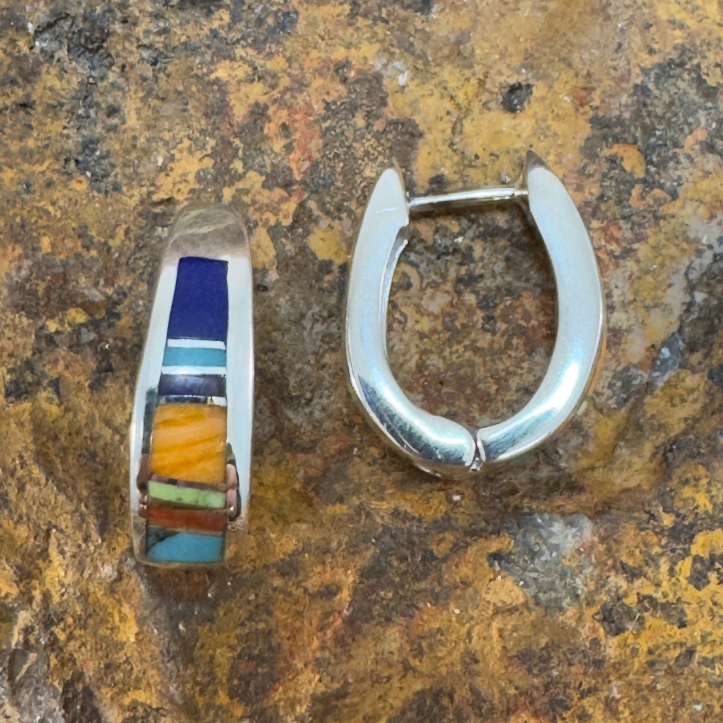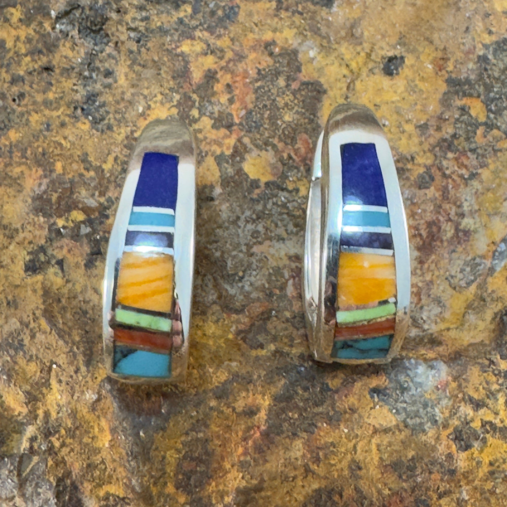 David Rosales Indian Summer Inlaid Sterling Silver Earrings Huggie