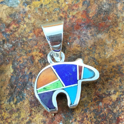 David Rosales Indian Summer Inlaid Sterling Silver Pendant Little Bear