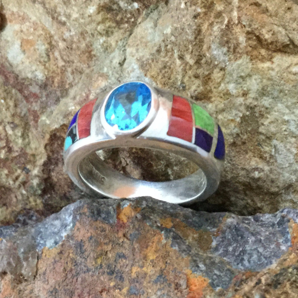 Ask a question about David Rosales Indian Summer Inlaid Sterling Silver Ring w/ Blue Topaz