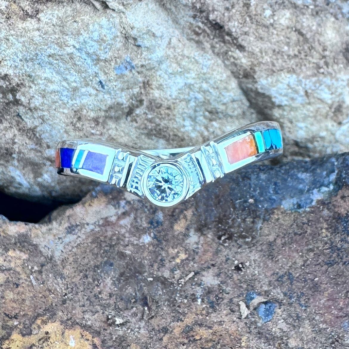 David Rosales Indian Summer Inlaid Sterling Silver Ring w/ Cubic Zirconia