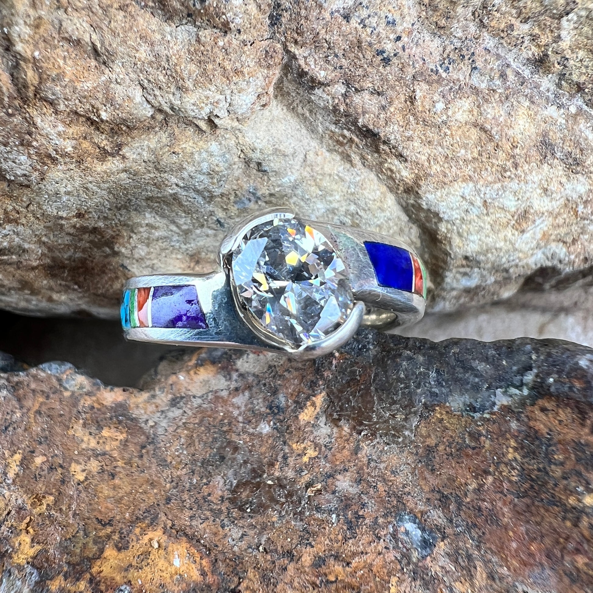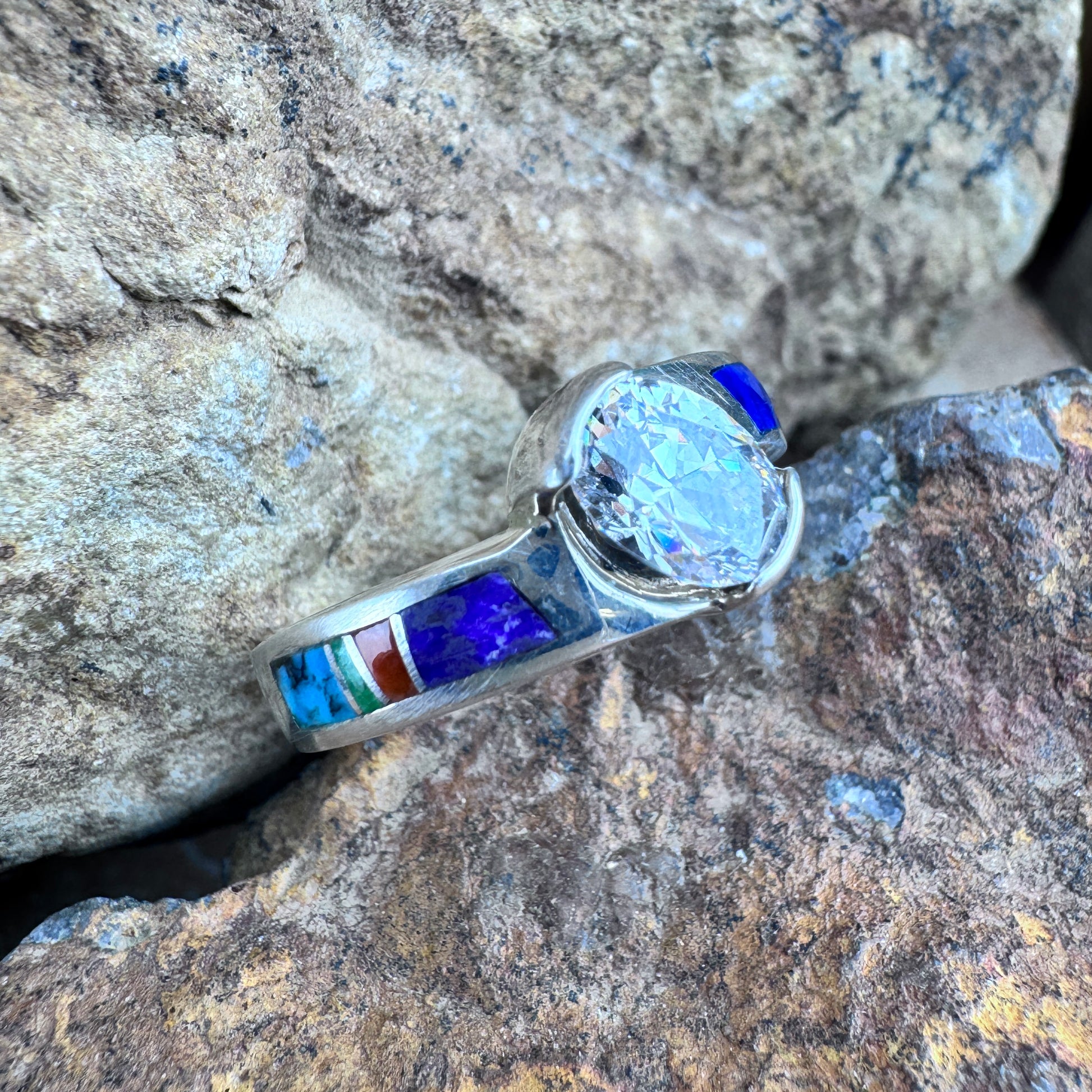 David Rosales Indian Summer Inlaid Sterling Silver Ring w/ Cubic Zirconia