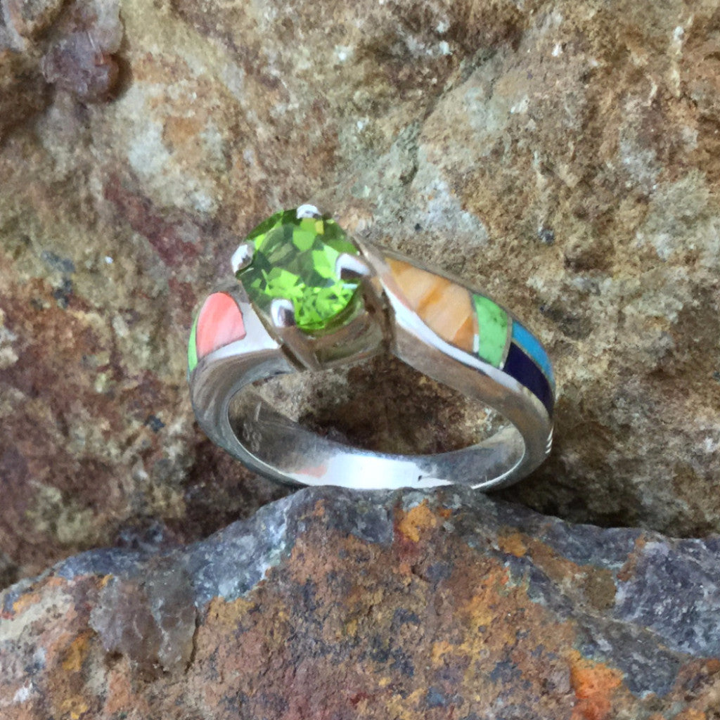 Ask a question about David Rosales Indian Summer Inlaid Sterling Silver Ring w/ Peridot