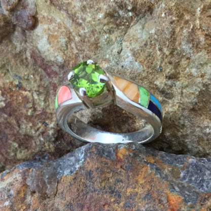 David Rosales Indian Summer Inlaid Sterling Silver Ring w/ Peridot