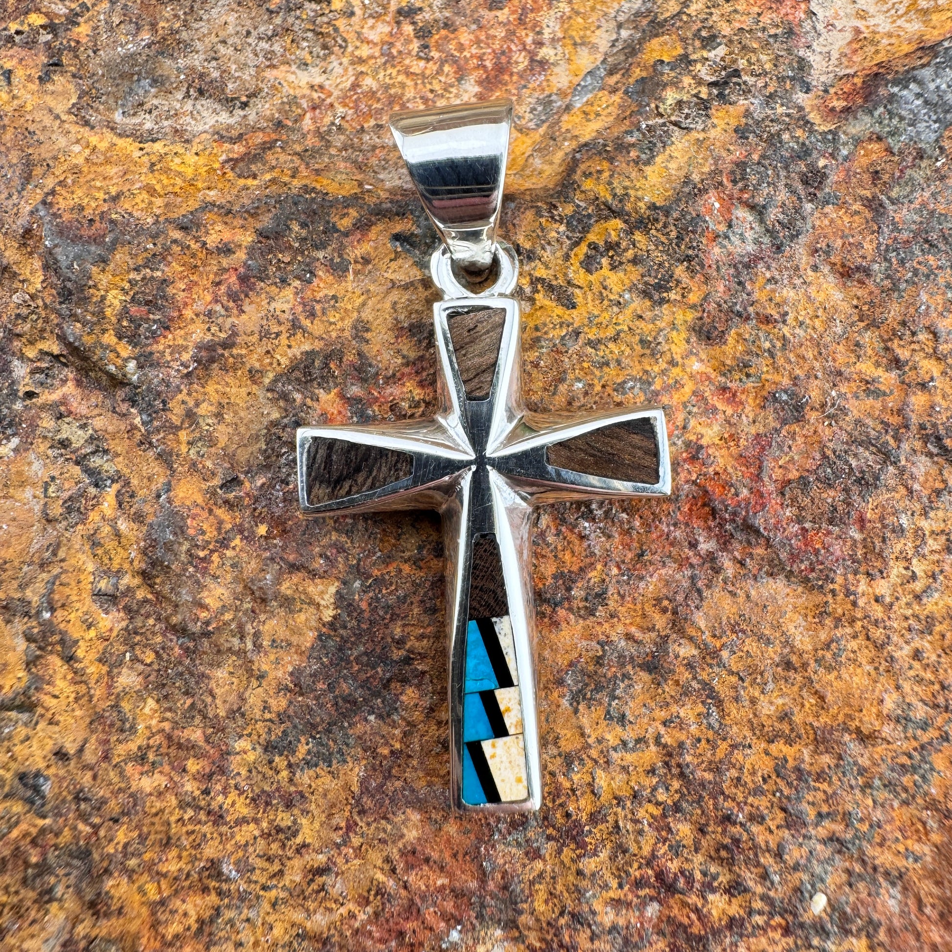 David Rosales Iron Spirit Inlaid Sterling Silver Pendant Cross