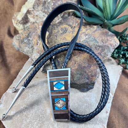 David Rosales Ironwood Inlaid Sterling Silver Bolo Tie