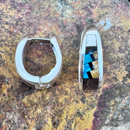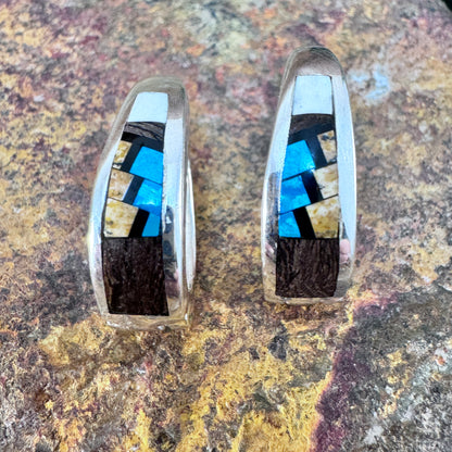 David Rosales Ironwood Inlaid Sterling Silver Earrings Huggie