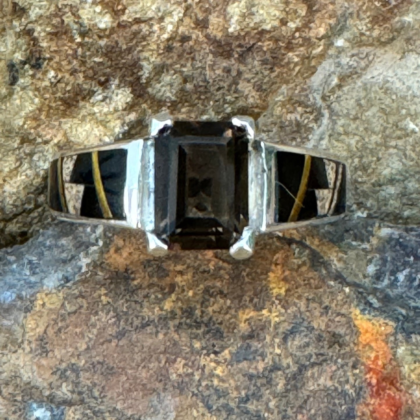 Ask a question about David Rosales Native Earth Inlaid Sterling Silver Ring w/ Smoky Topaz