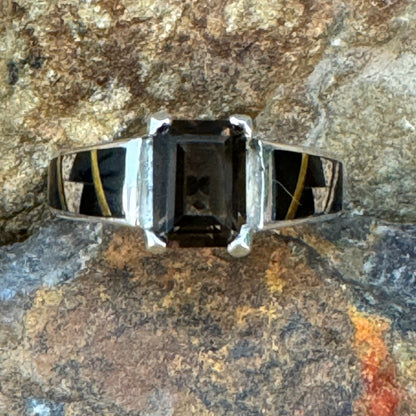 David Rosales Native Earth Inlaid Sterling Silver Ring w/ Smoky Topaz