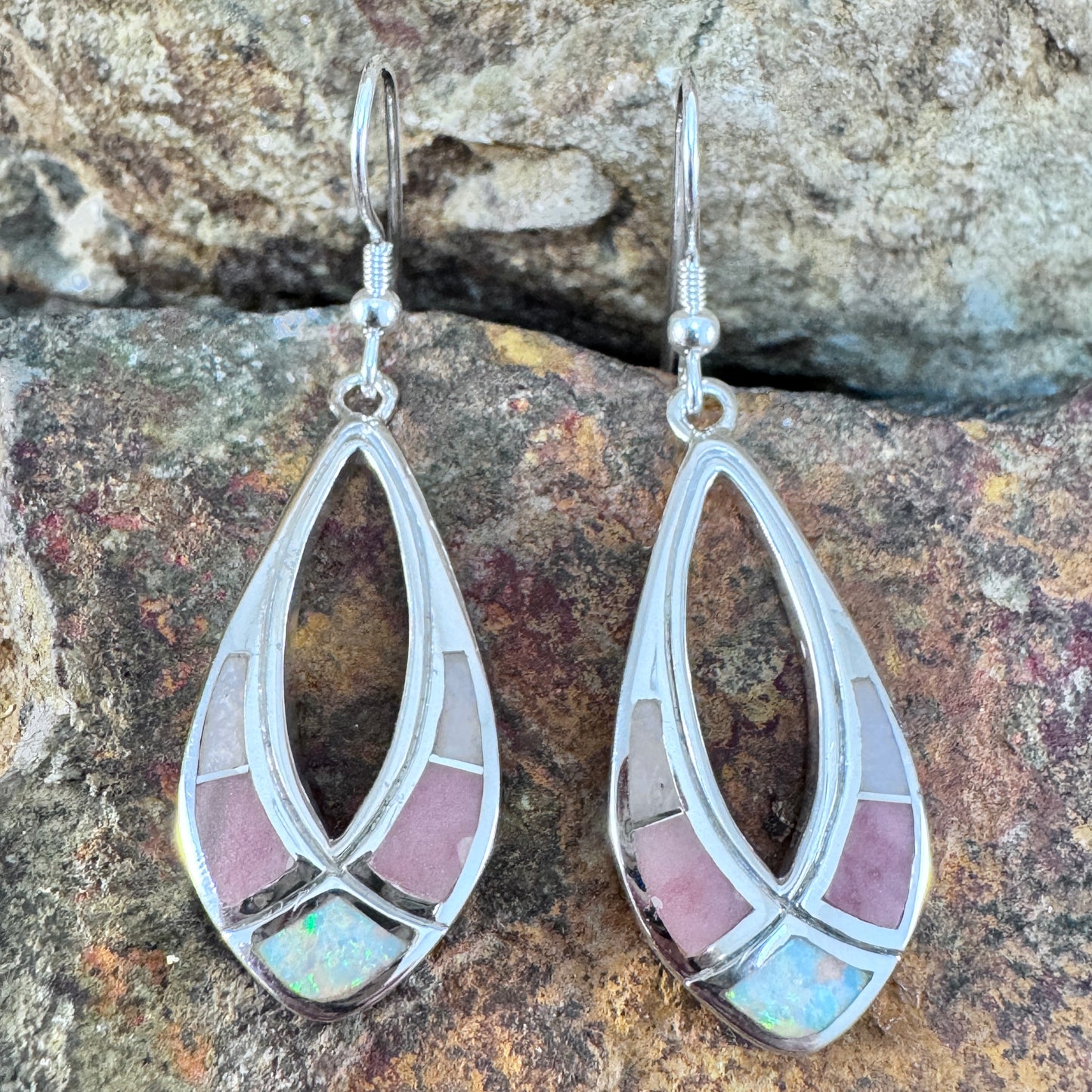 These gorgeous Sterling Silver Earrings, are now part of the Make Me Blush Collection, features Rhodonite, Pink Peruvian Opal and White Lab Opal.
